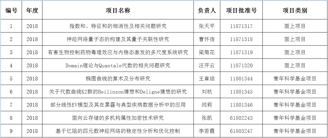 国家自然科学基金项目-2018年