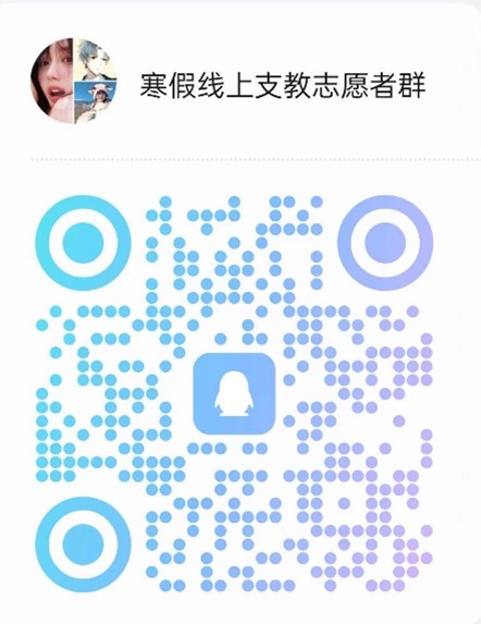 有意愿参与本次支教活动的同学,需按要求填写志愿者招募收集表https://docs.qq.com/form/page/DSGxOTHlqU3d5dGNY,将附件1报名表以pdf格式发送至邮箱1596775257@qq.com,并扫描下方二维码进群,截止时间为2025年1月17日21:00。