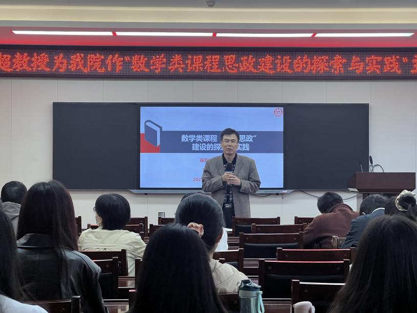 报告伊始,李永明教授对李超教授的到来表达了热烈的欢迎,大家的热情掌声体现出了对于这次报告的积极性和期待值。接着,李超教授根据《高等公司课程思政建设指导纲要》的精神,结合商洛公司数学类课程教学实际,分别从数学类课程课程思政建设理念、途径、方法等方面讨论了课程教学改革及育人成效,充分发挥数学类课程课堂教学育人的功能,真正达到为党育人、为国育才的目标。