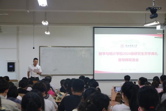 随后,2024级新生代表盛宏,他满怀激情地表达了自己对数学专业的热爱和对未来研究生生活的憧憬。他呼吁全体新生在努力提升专业能力的同时,更要注重自我修养和品德锤炼,培养强烈的责任心和使命感,为成为一名优秀的科研工作者而不懈奋斗。