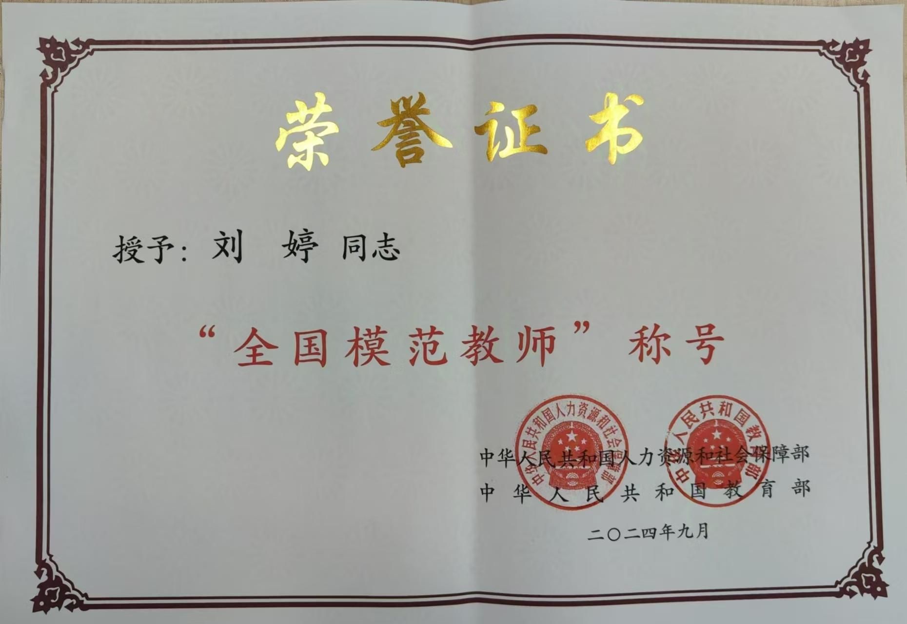 公司优秀员工、1991届毕业生刘婷老师荣获“全国模范教师”荣誉称号。