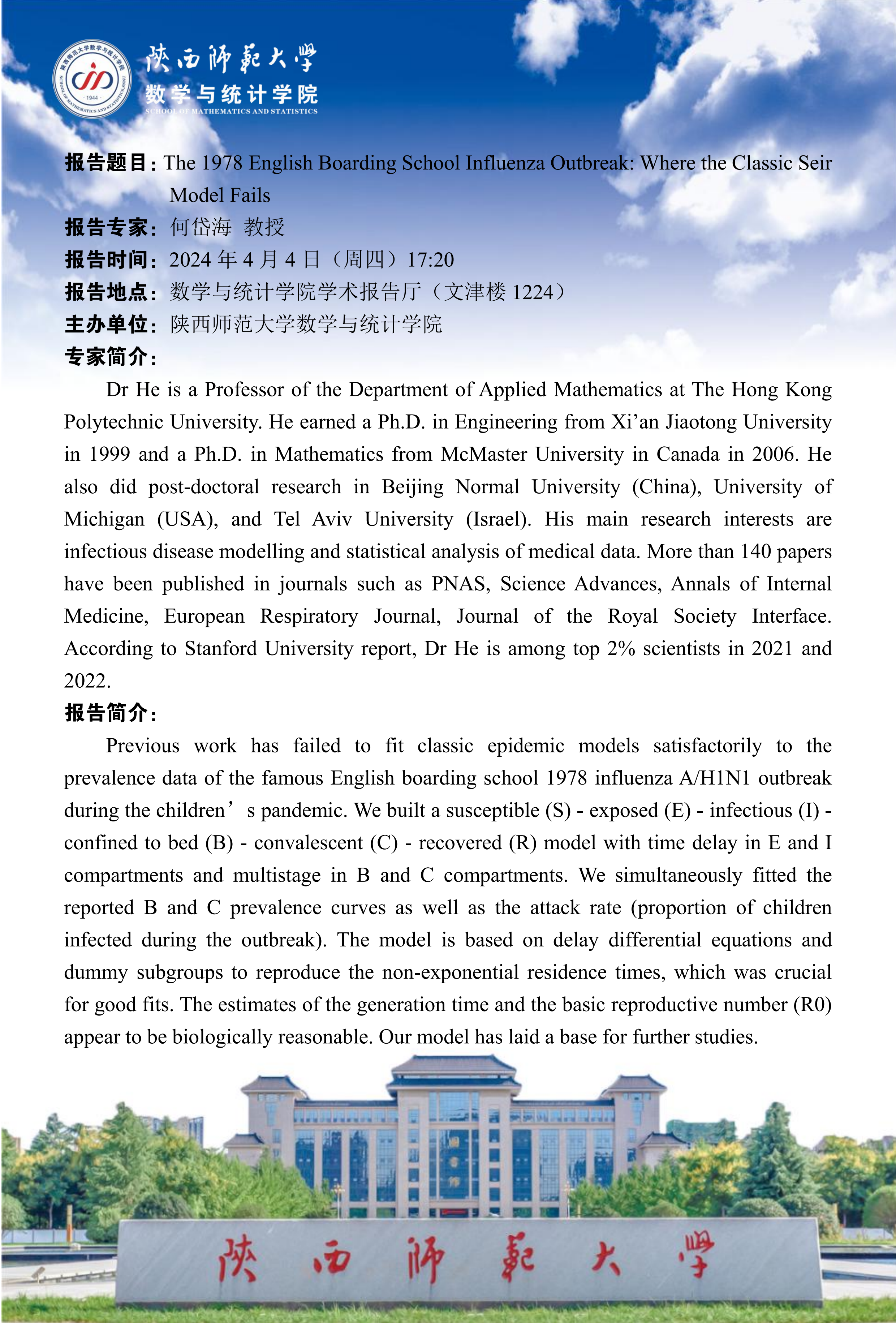 八秩同辉校庆系列11 The 1978 English Boarding School Influenza Outbreak: Where the Classic Seir Model Fails