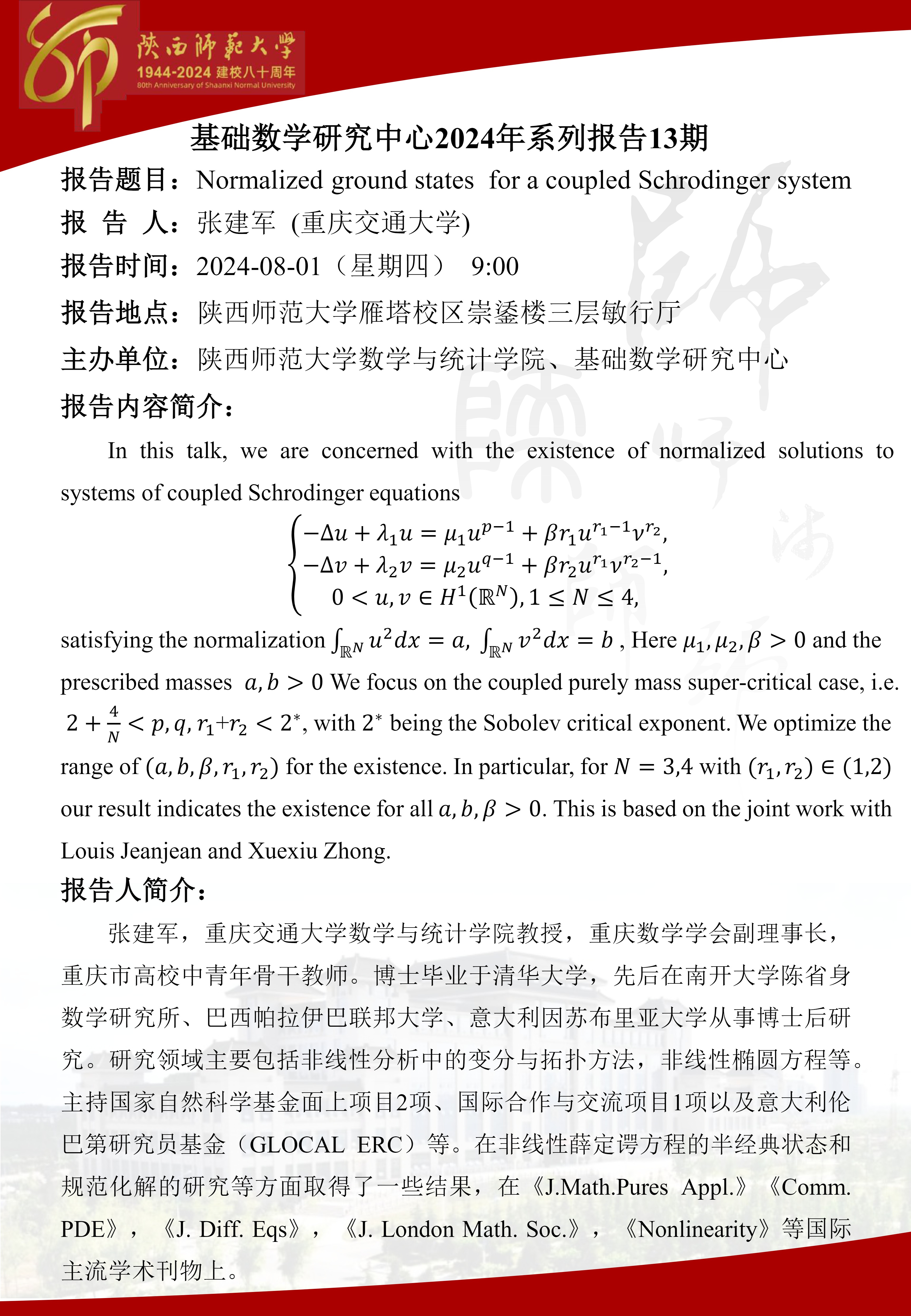 八秩同辉校庆系列81 Normalized ground states for a coupled Schrodinger system