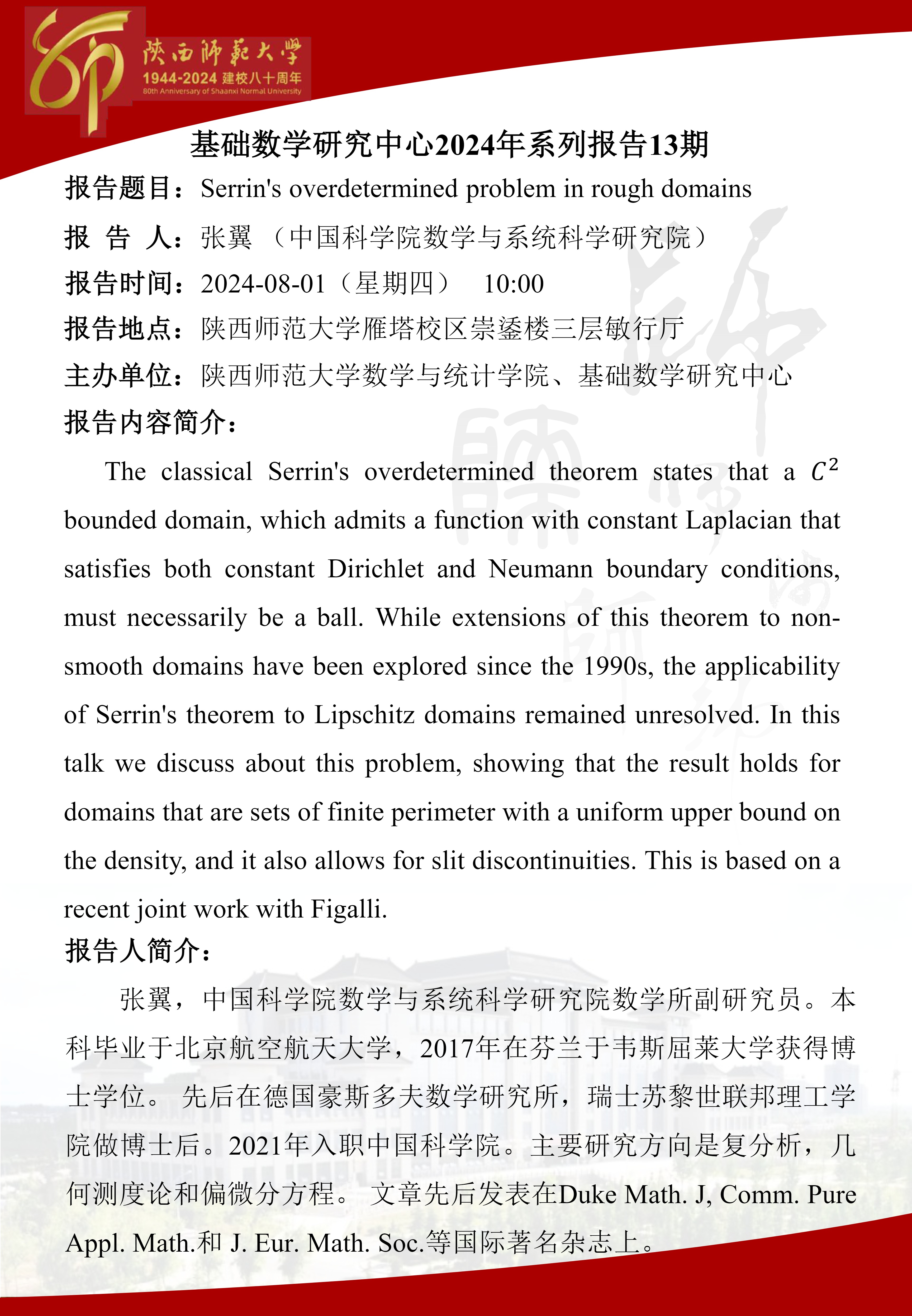 八秩同辉校庆系列82 Serrin's overdetermined problem in rough domains