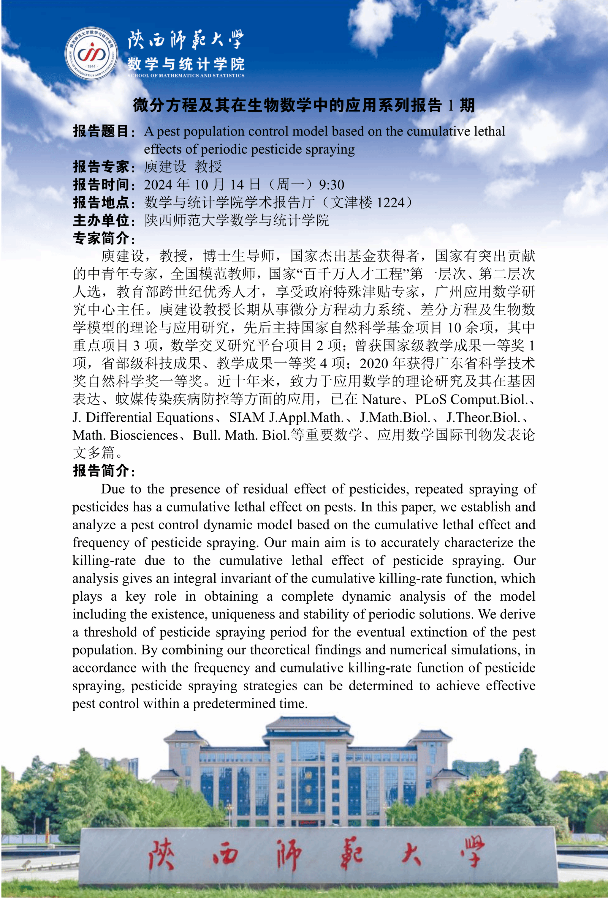八秩同辉校庆系列94 A pest population control model based on the cumulative lethal effects of periodic pesticide spraying