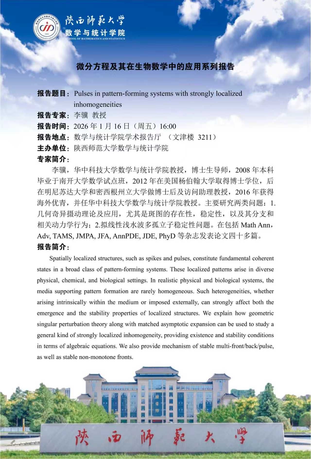 数统华章2026系列5 Pulsesin pattern-formingsystemswith stronglylocalized inhomogeneities