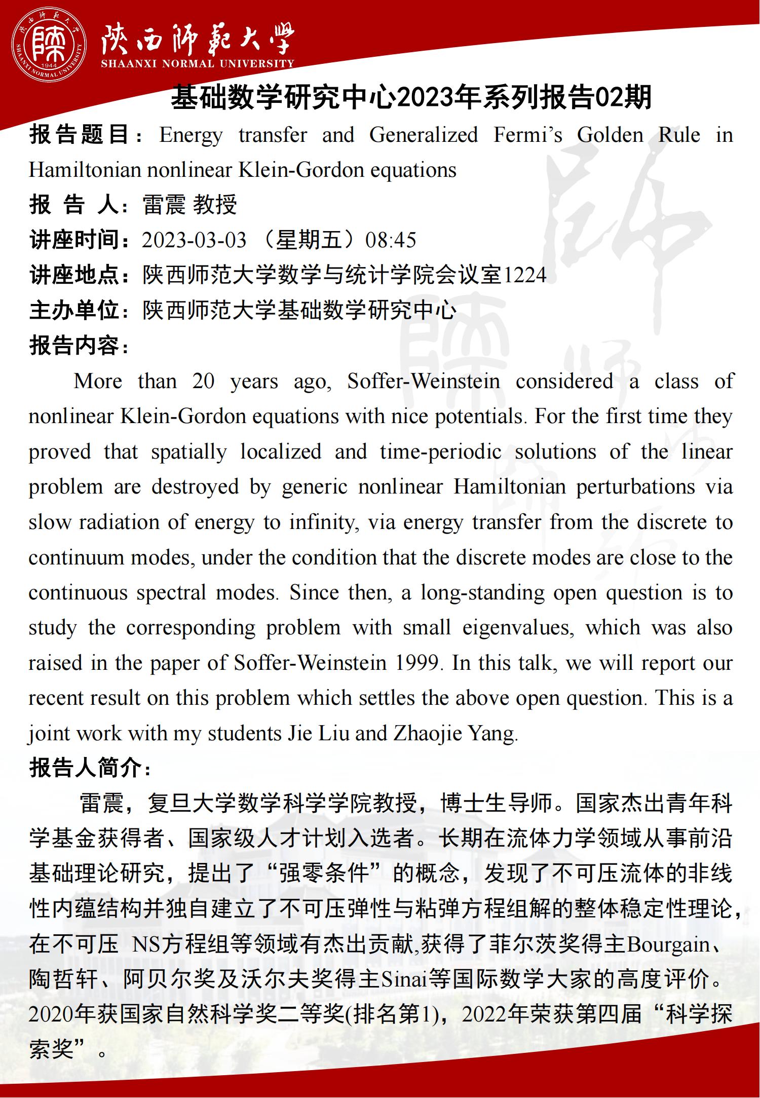 反应扩散方程理论及应用系列报告