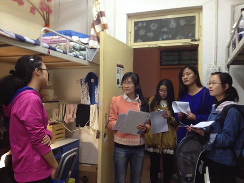 经过动员大会、自愿报名及作品征集等一系列前期准备活动结束后,10月30日下午5点,本次宿舍文化节的评选活动正式展开。活动中,参赛寝室分为三组,并由评委团的四位老师带队对三组寝室进行实地考察评分。