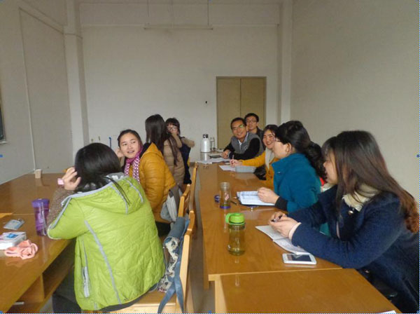 本次教授接待日活动采取了同学们讲课,老师指导点评的形式。有四位同学进行了现场讲课,老师分别就教态、语言表达、语速快慢、课堂提问方式、课堂突发事件的处理以及具体教学内容的讲解方法等问题进行了细致的分析,同学们讨论很热烈,现场气氛十分轻松愉悦。