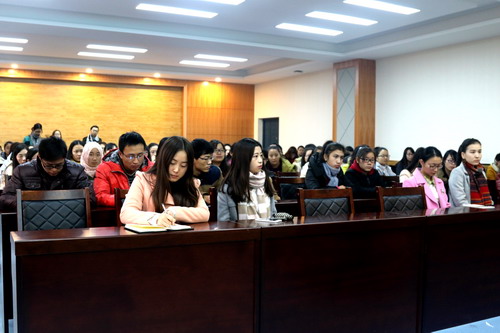 会上,同学们认真记录,积极提问。通过此次会议,同学们对就业形势有了更清晰地认识,对自身求职目标有了更明确的规划,增强了求职信心,坚定了从教信念!
