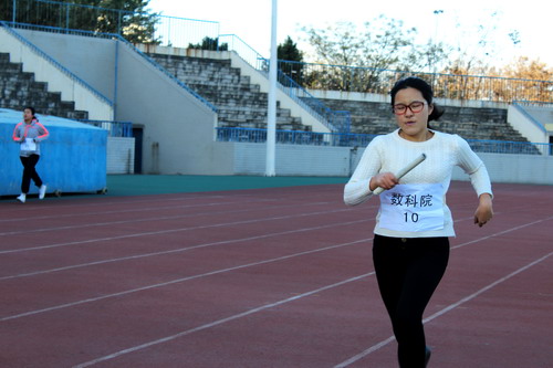 12月16日,公司2015年阳光体育冬季长跑启动仪式暨纪念“12.9”运动马拉松长跑接力赛在公司长安校区田径场正式拉开帷幕。公司运动员们奋力拼搏,全力以赴,喜获第三名的骄人成绩。公司分党委副书记崔创、团委书记邹尚田、2014级辅导员鞠恩霞到现场观看比赛并为运动员们加油助威。