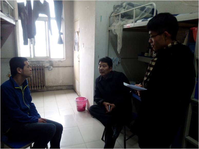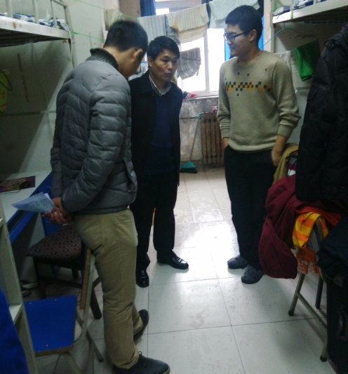 五个检查组分别走访了B区和D区的本科生宿舍及部分研究生宿舍,重点检查宿舍卫生、大功率电器使用等。走访期间老师亲切询问了同学们的宿舍日常生活状况、用水用电、宿舍供暖及最近学习等各方面情况,并针对宿舍用电安全、防盗、宿舍卫生等注意事项进行了强调与交流,勉励同学们互相帮助,营造温馨、和谐、安全的宿舍环境。