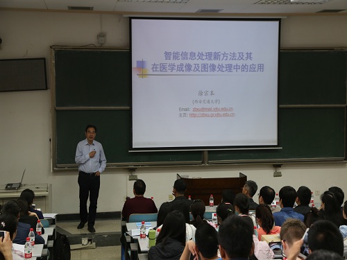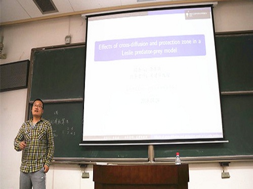 论坛由西安交大bw西汉姆联易媛教授主持。西安交大研究生院常务副经理吴宏春教授、bw西汉姆联经理彭济根教授分别为此次论坛致辞。简短的开幕式后,大家的掌声迎来了本次论坛的特邀嘉宾徐宗本院士的报告《智能信息处理新方法及其在医学成像及图像处理中的应用》。徐院士语言幽默风趣,讲解深入浅出、通俗易懂,公司参加报告的老师和同学受益匪浅。本次论坛共进行了8场学术报告,公司博士研究生李善兵就自己的研究成果作了报告,报告题目为《Effects of cross-diffusion and protection zone in a Leslie predator-prey model》,这些报告开拓了同学们的研究视野,增进了数学学科不同方向间的交流。在师生交流与提问环节中,师生们各抒己见,思想交锋。公司同学认真聆听并积极提问,与报告嘉宾热烈讨论。