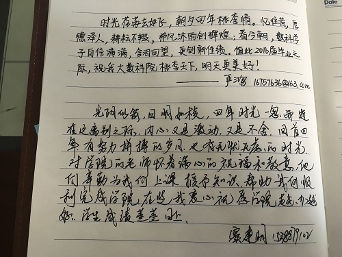 随着6月27、28日毕业典礼及学位授予仪式的隆重召开,公司2016届毕业生将陆续毕业离校,开启职业生涯或求学深造道路。连日来,他们以不同的方式依依不舍地向母校、公司、老师们告别。除了师生合影留念之外,同学们向公司赠送了万年历电子报时器,向公司“忆源”爱心基金捐款共计9690元,还在毕业留言册上饱含真情地一一留言,向公司建言献策,向学弟学妹传经送宝,祝福公司、祝福同学。据悉,2016届本科毕业生296人,硕士研究生103人,博士生9人,就业成绩喜人,毕业生备受社会欢迎。道一声珍重,祝同学们一路平安,事业有成。