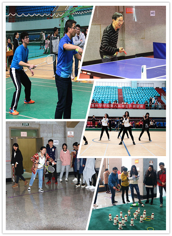 此次乒羽联赛分为团体赛、男子篮球表演赛、趣味比赛三个环节。团体赛分为羽毛球和乒乓球比赛。赛场上选手们激烈竞争,争夺每一球每一分。趣味比赛包括大型趣味项目running Sky、愤怒的羽毛球、九宫格密码、套娃娃、你画我猜等五个项目,共有14支代表队参赛。同学们全身心投入到数学益智游戏中,在游戏中学习数学,寓学习于游乐。在师生团体项目,老师和同学们配合默契,交流切磋球技,增加了师生情谊。同时联赛的工作人员们不辞辛劳、坚守岗位、始终为全院师生服务。整个上林体育馆充斥着们爽朗的欢笑声,高亢的鼓舞声,激动人心的欢呼声,让人忘记了冬天的寒冷。