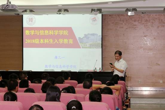 8月26日,数学与信息科学公司于雁塔校区崇鋈楼三层归仁堂举办了2018级新生见面会暨入学教育报告会。经理唐三一、党委书记田安政、党委副书记邹尚田、副经理周红军、团委书记及2017级辅导员王鑫、2018级辅导员鞠恩霞、研究生辅导员秦泽华、2015级辅导员张伟超、2016级辅导员任灵,以及252名新生参加了会议。会议由党委副书记邹尚田主持。经理唐三一等领导对2018级新生的到来表示了由衷的欢迎和祝福。