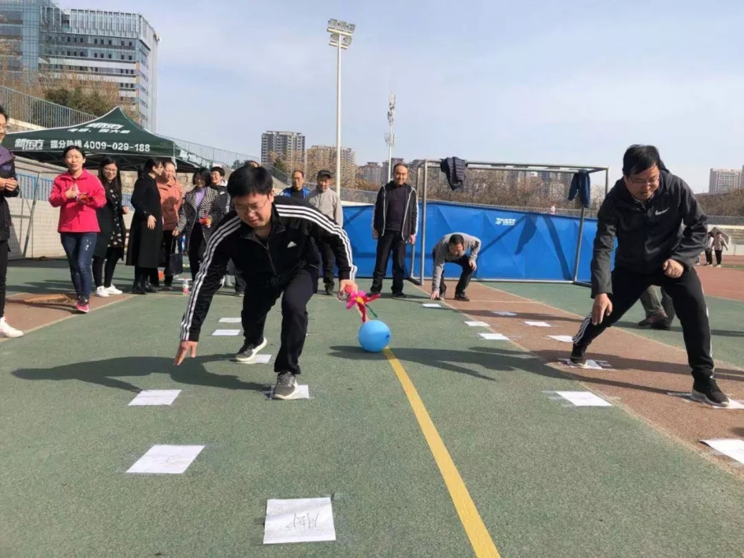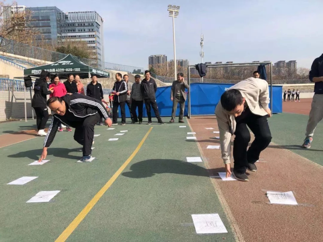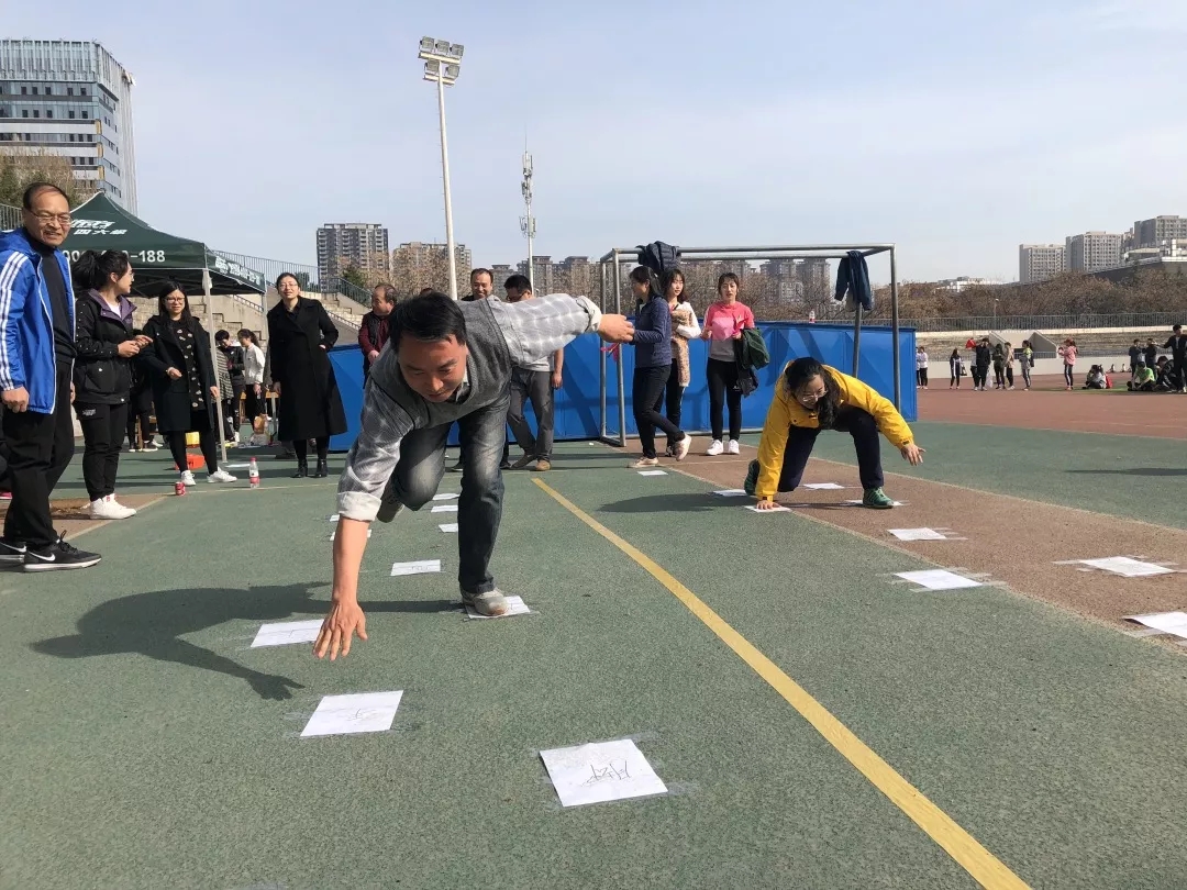 老师们也加入了比赛,展现出他们在赛场上的飒爽英姿。有的老师拿着气球,找好了出力点,敏捷地用头顶出,向终点跑去;有的老师手握特制的“旱冰球”,盯着终点线,只见“旱冰球”迅速从手中滑出,超出了重点线;有的老师现场组队,接力运送扑克牌上的面粉,不过面粉总会不经意地飞出,老师们要在云里雾里将扑克牌上的面粉安全送达,秘诀就是屏住呼吸,他们配合默契,动作敏捷;还有的老师身手灵活,手脚并用,快速地通过了“情同手足”这一关卡。