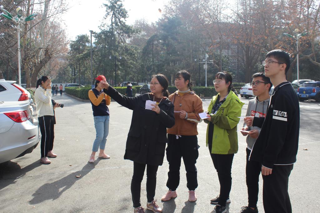 活动的哨令响起,整齐排列的队伍马上四散开来,原本寂静的广场瞬间变得一片火热,同学们洋溢的热情和青春的活力将气氛推向高潮。一路过关斩将,师大校园里处处都是数科院同学们活跃的身影,有遇到阻碍停下来寻找线索的同学,也有一骑绝尘朝着目标一往直前的,一道道身影连成了靓丽的风景。