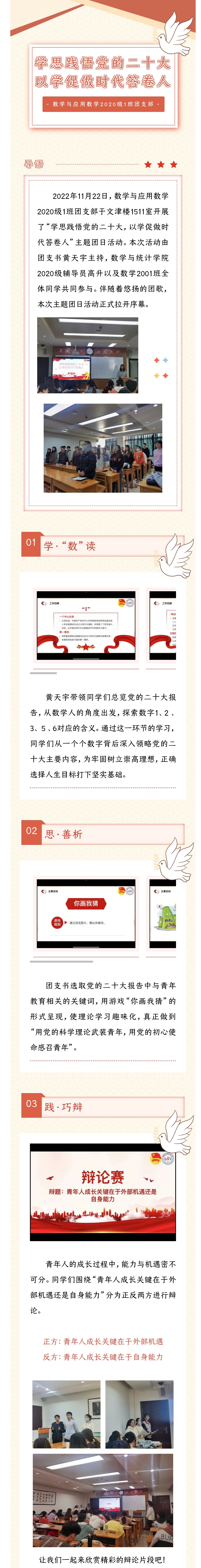数学与应用数学2020级1班团支部“学思践悟党的二十大,以学促做时代答卷人”示范主题团日活动