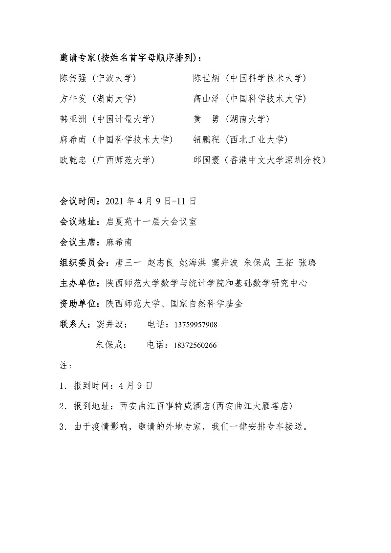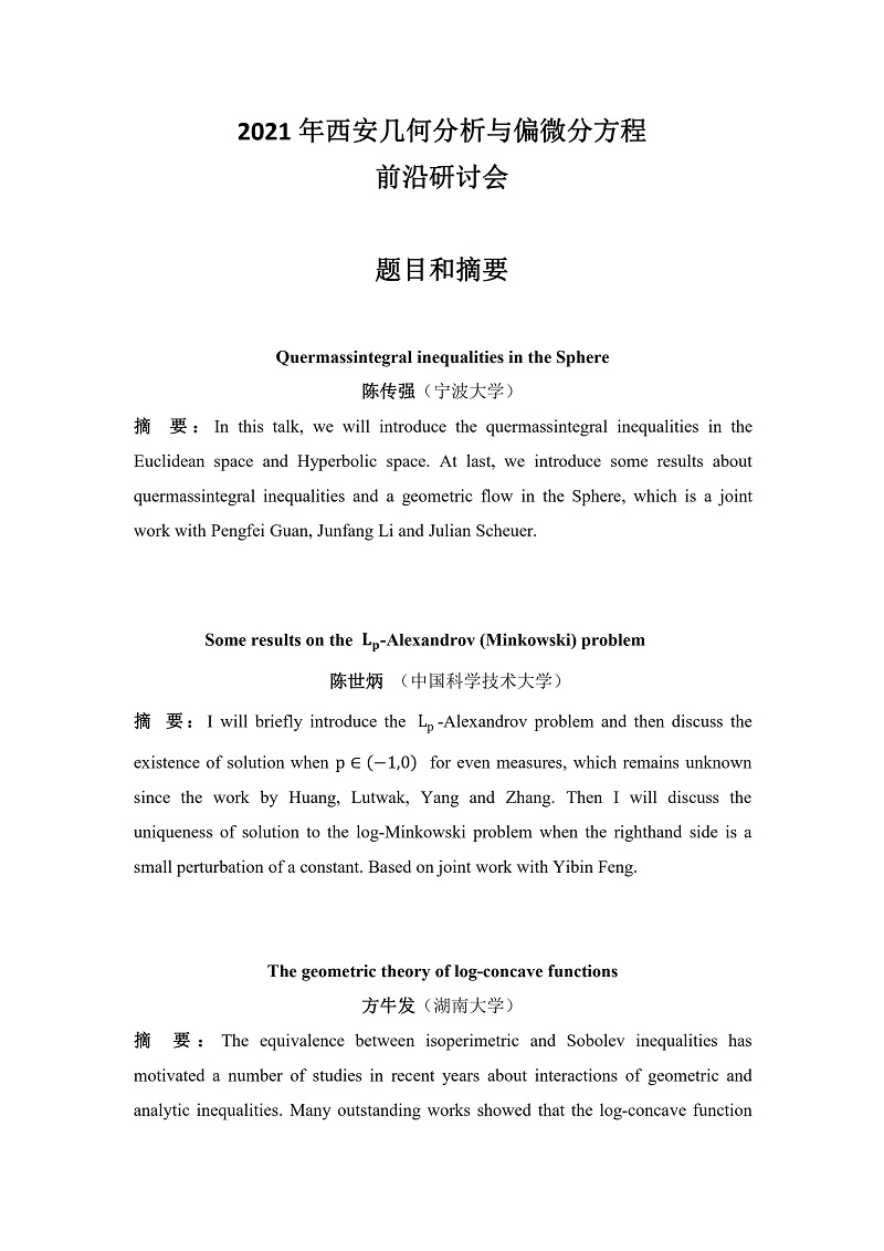 2021年西安几何分析与偏微分方程前沿研讨会